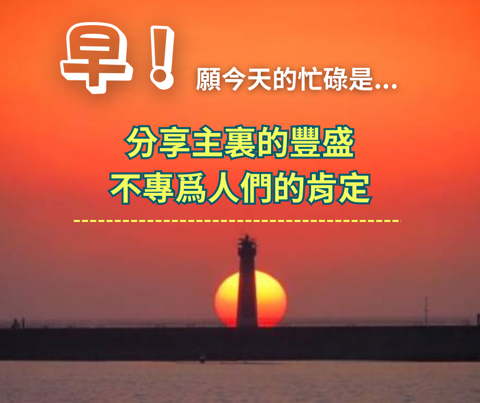 ● 感悟: 常感覺要為自己爭辯什麼?擁有什麼?以致於不斷地比較,與人爭競,甚至於心情進入低潮,這都是世界給予我們攻擊與試探,最要緊的是求主給我們一顆安靜的心,在所認定的事上(大/小)忠心有見識, 就能討人與神的喜悅, 那麼 「驕傲」就遠離了我們!