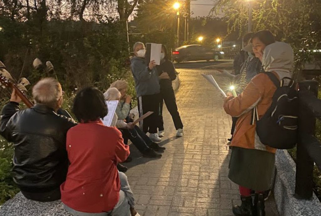 每當我們前去一個地方演出, 總是我們要先在那個地方做屬靈的部署. 在不同屬於黑暗權勢氣勢凝聚的地方,吟唱恩感的短歌, 展開這一次神劇演出的序幕。 每當我們在不同的地點,有時是公園,有時是該地的活动中心或者某個公共場所前面休閒之處,我們吟唱恩感短歌。 說也奇怪,但屢試不爽, 前面的道路就會一步一步展開,包括合作單位、籌劃過程、演員、詠唱團團員、經費等, 慢慢一个一個就會到位. 征戰頌讚兵團,平時也是詠唱團的團員,常常有練習噢,但既是屬靈征戰就特別由有負擔的弟兄姊妹所組成!!